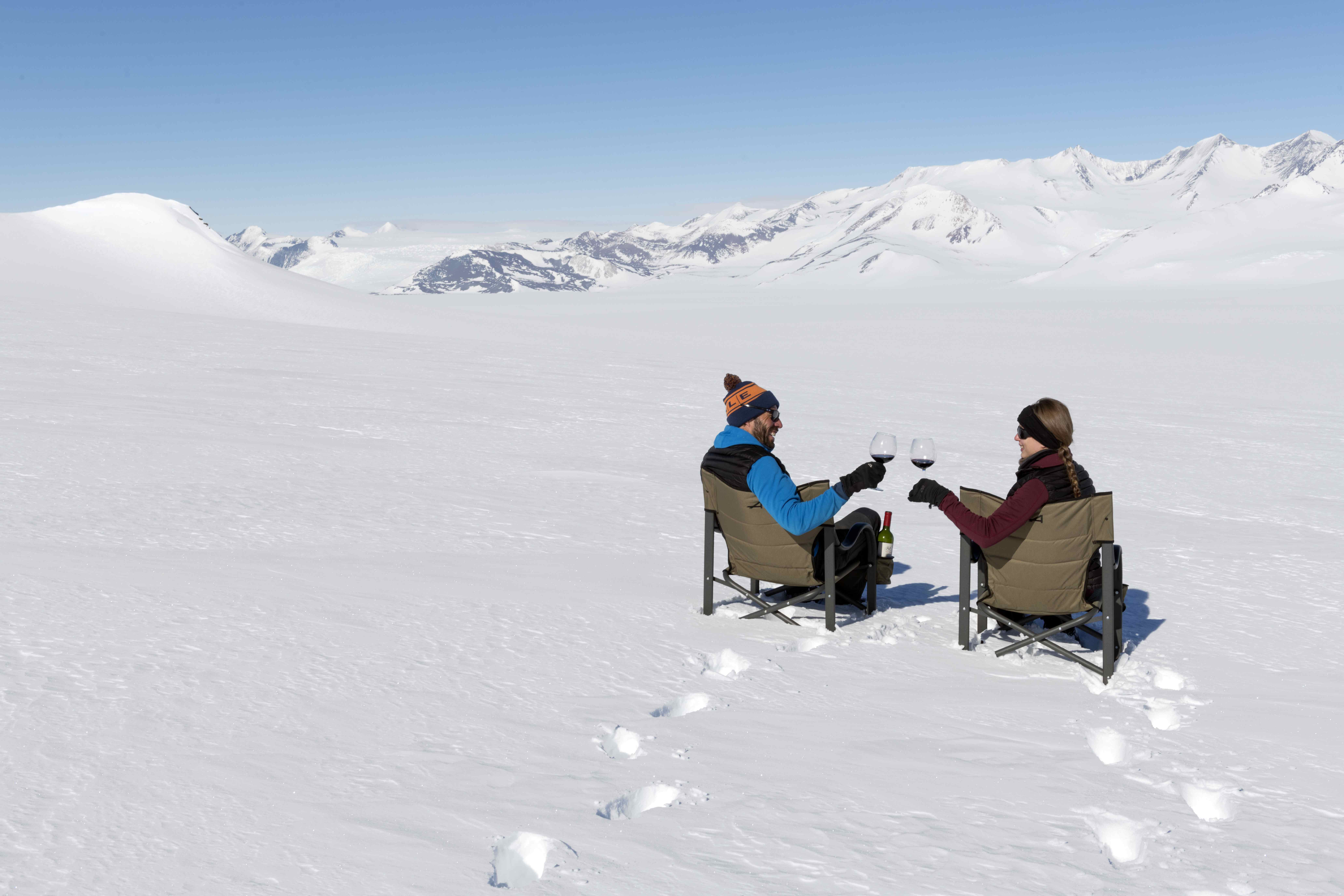 Tucked into the southern Ellsworth Mountains on the broad expanse of Union Glacier, 3 Glaciers is a warm and luxurious base in the heart of Antarctica’s interior. Located just a stone’s throw from Mount Vinson—the continent’s highest peak—you’ll be 1,883 miles (3,030 km) from the southern tip of Chile and worlds away from the ordinary. With private domed tents, gourmet meals, and expert guides, this is basecamp reimagined for the modern explorer. Wake up to alpenglow on the mountains and head out each day for tailor-made adventures in this pristine and dramatic landscape.