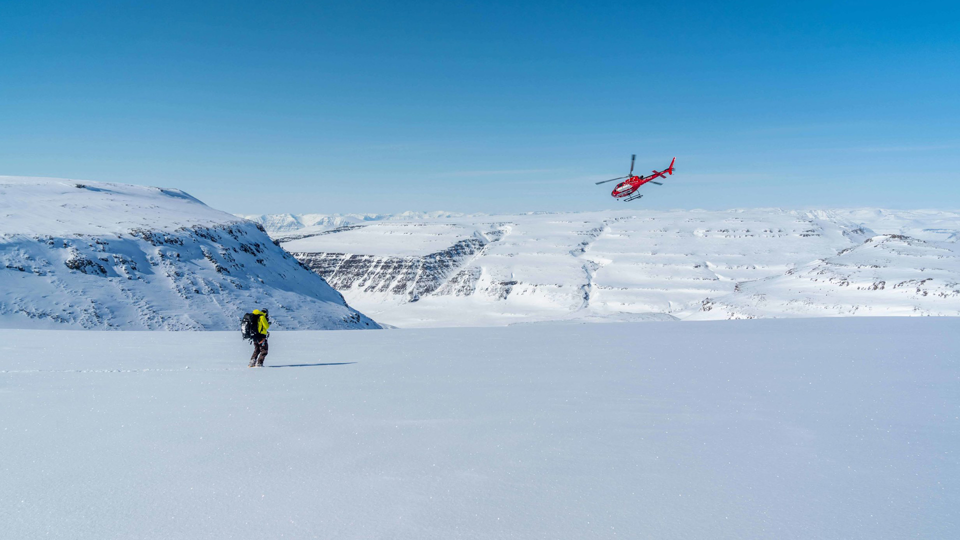 But upon a closer look, there is an abundance of diversity and adventure to be found within this sparseness. Tundra species found nowhere else in the world, glacially carved fjojrds that curve through miles of ancient geology, and dramatic, unsummited mountain peaks. These vast, boundless conditions are what make the island so challenging to visit, so distinctly untouched, and so exciting to explore. They’re also what make it the ideal destination for some of the world’s most exhilarating skiing. After pioneering yacht-based heliskiing in the extremes of Antarctica, we sought out the same adventure in Greenland in 2022, giving our guests access to virgin runs in this breathtaking polar desert unlike any expedition before. This year, we’re returning with the same team in search of more alpine adventure without lifts, without lines, and without limits.