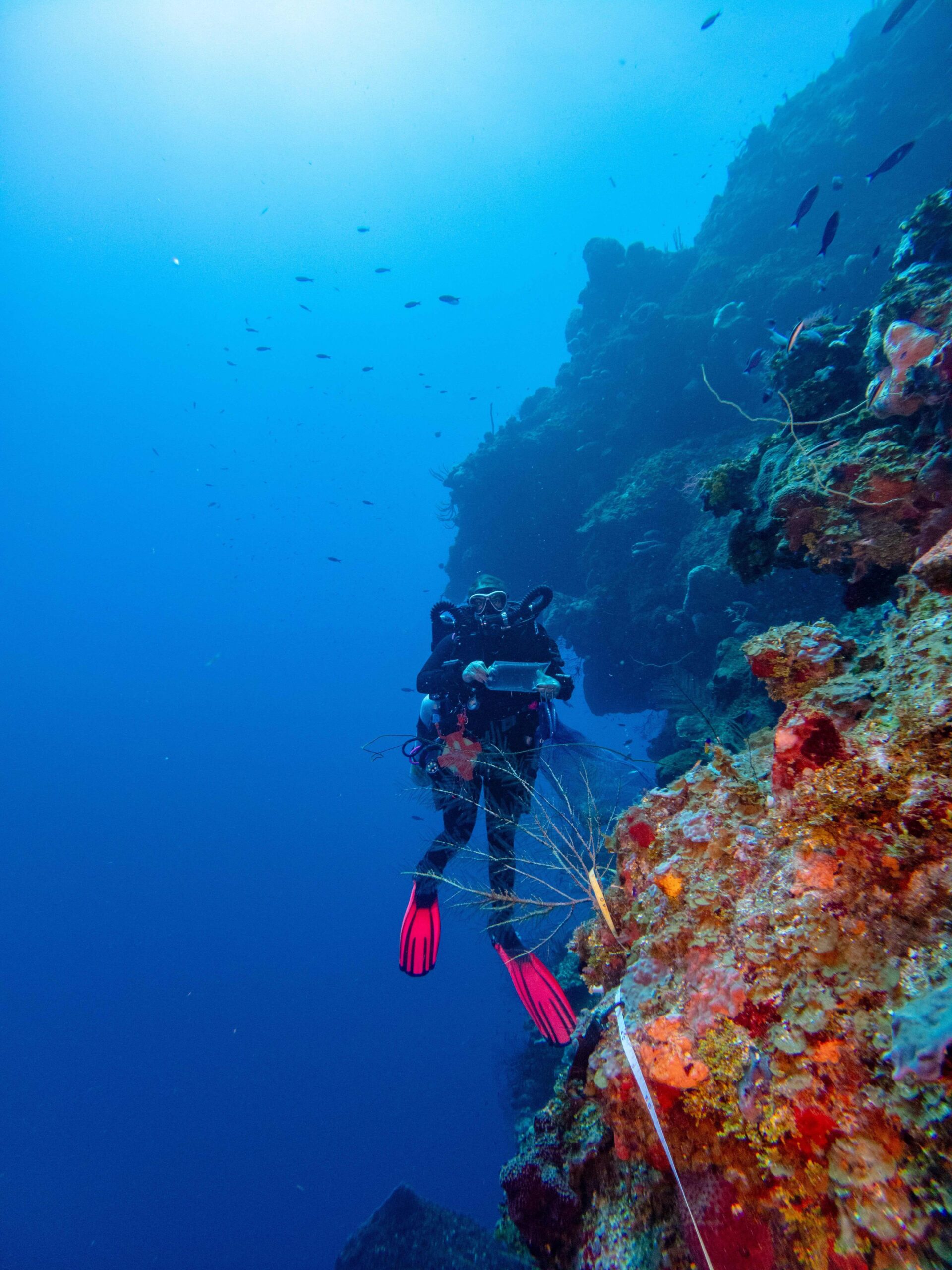 Of course, studying such remote environments doesn’t come without its challenges. Chief among them is access. Conducting scientific dives and deploying advanced tools like photogrammetry and genetic sampling in open ocean conditions requires a vessel that is both large enough to accommodate technical divers and capable of withstanding rough seas. As part of a grant provided through the UK Darwin Plus initiative we’ve completed two expeditions to the nearer seamount—one as a series of day trips and another via a liveaboard—and a third expedition to the more remote site, launched from Little Cayman. Yet, our ability to continue this vital work is constrained by funding for vessel time. The availability of private yachts through YFS presents a game-changing opportunity to scale up our exploration efforts.