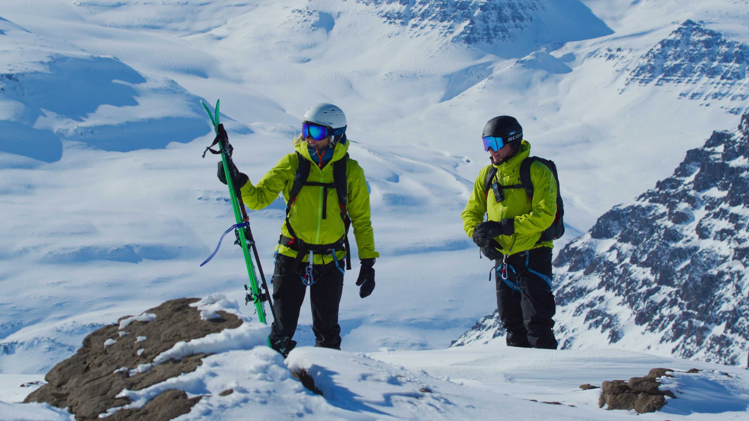 No lift, no lines. Ski from summit to sea on wide, treeless snowfields and down steep couloirs flanking glacier-sculpted peaks. Carve tracks where few have or will — from heights overlooking iceberg-choked bays and granite landscapes some 3.8 billion years old.
