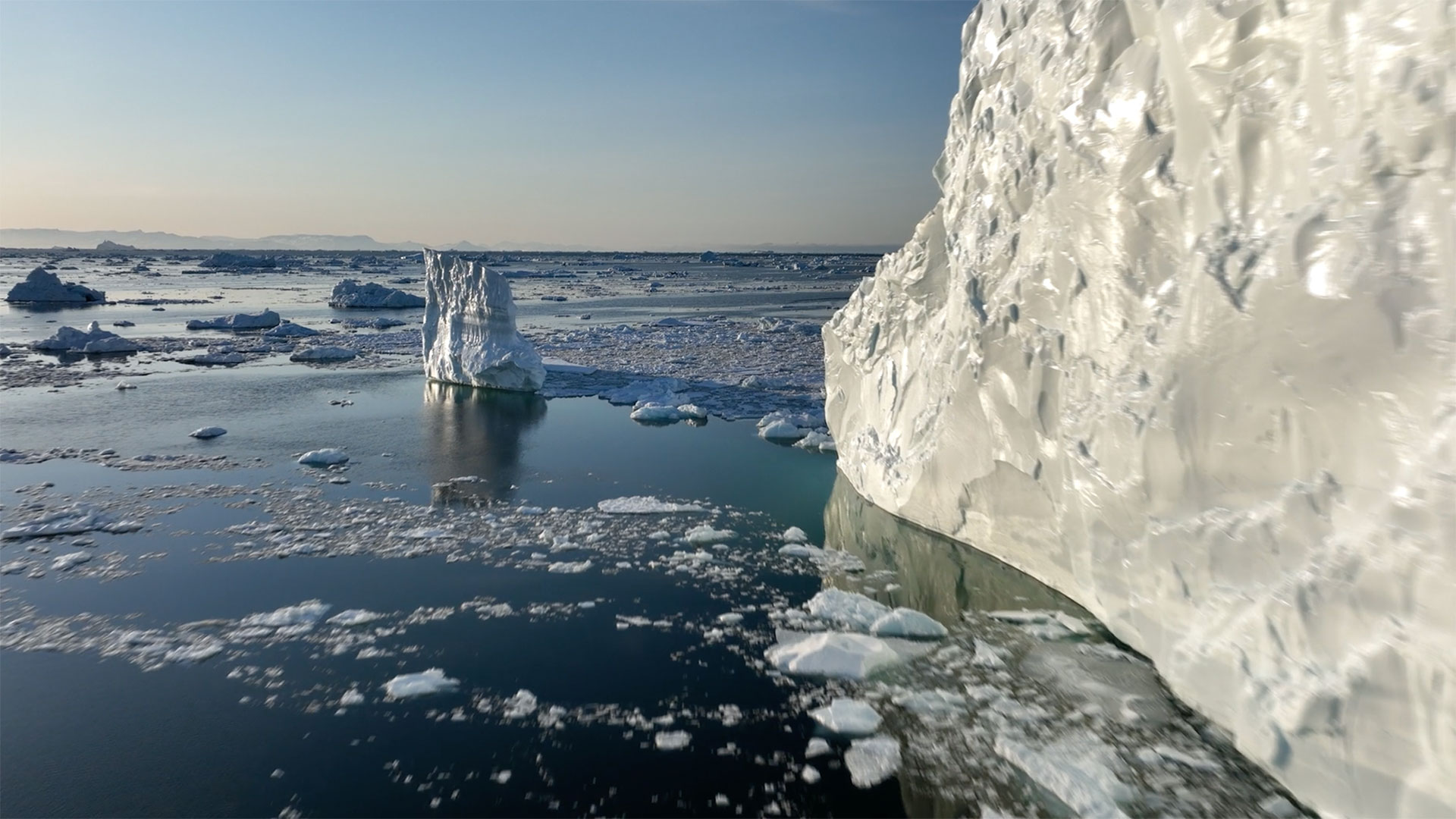 The biggest ice sheet in the northern hemisphere sits atop Greenland, draining 350 billion tons of ice into the sea.