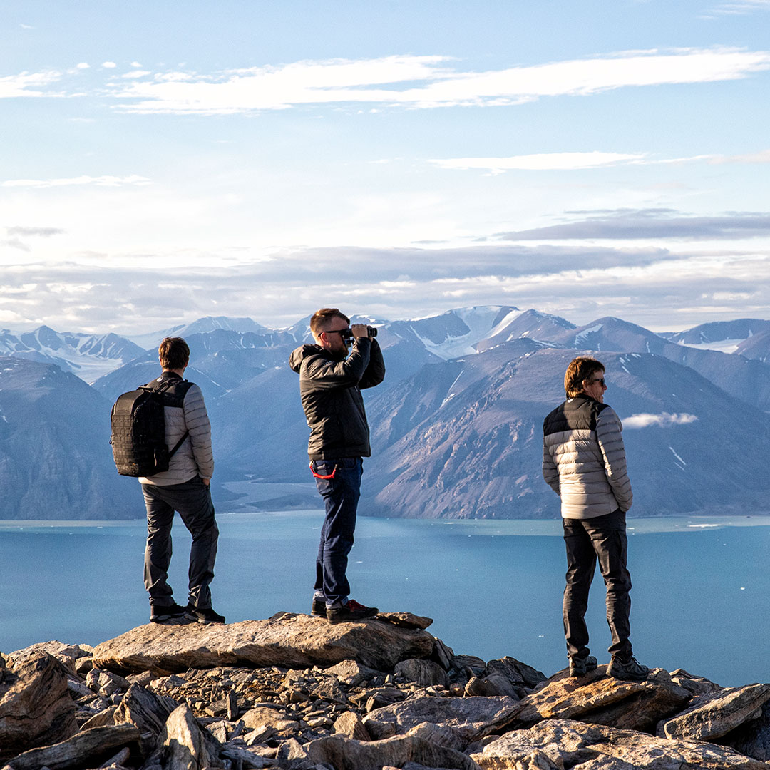 Taking advantage of the long daylight hours, our sharp-eyed staff will search pack ice for signs of narwhal, walrus and the iconic polar bear. We’ll sail through grand fjords surrounded by towering mountain barriers, marveling at icebergs that dot the way.