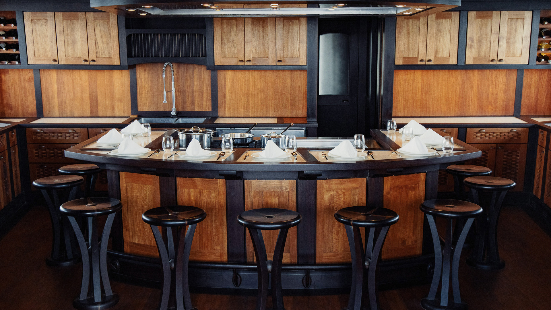 Seamlessly blending the ancient with the sleek and modern, step from the deck, surrounded by a traditional Indonesian exterior into the large galley, complete with a teppanyaki grill surrounded by bar seating.