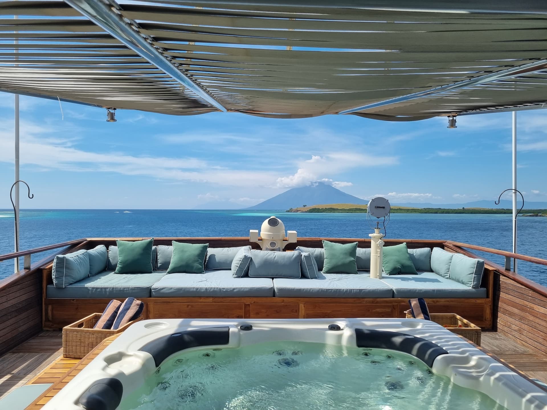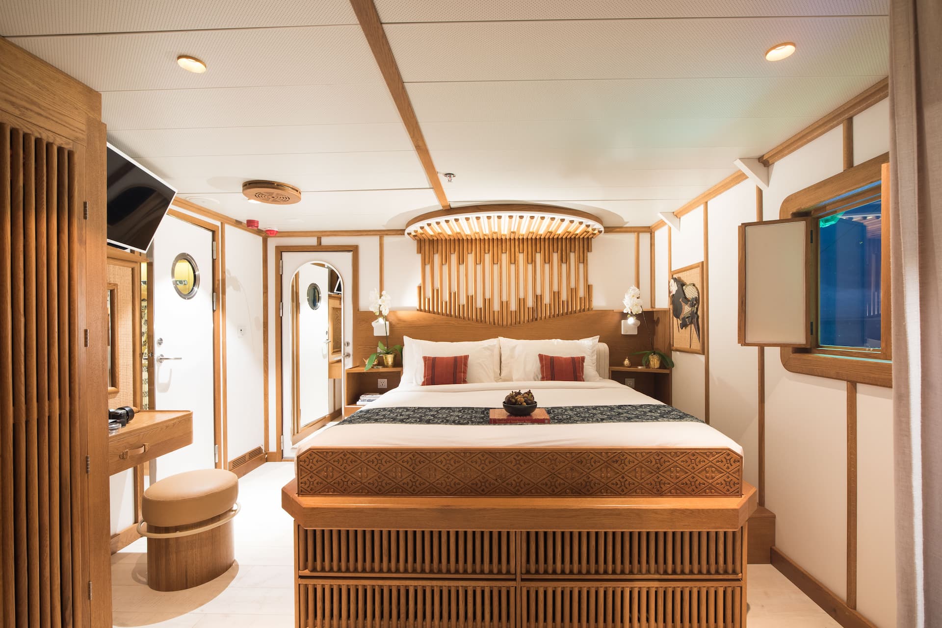 Accommodating up to 16 adults and 3 children in eight state-of-the-art cabins, each spanning 30 square meters, Kudanil Explorer is the only yacht in Indonesia to feature private, spacious balconies for each cabin, offering breathtaking views at every turn.