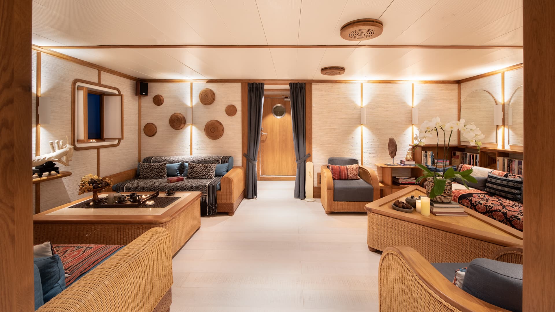 Take advantage of the yacht’s tenders and water toys to explore shipwrecks, hidden caves, mangroves, vibrant coral reefs, and world-class surf spots. Kudanil Explorer offers an unparalleled opportunity to experience the extraordinary wildlife and natural beauty of the Indonesian archipelago, all while relaxing on the sun deck or in the sky lounge, taking in the panoramic views of paradise.