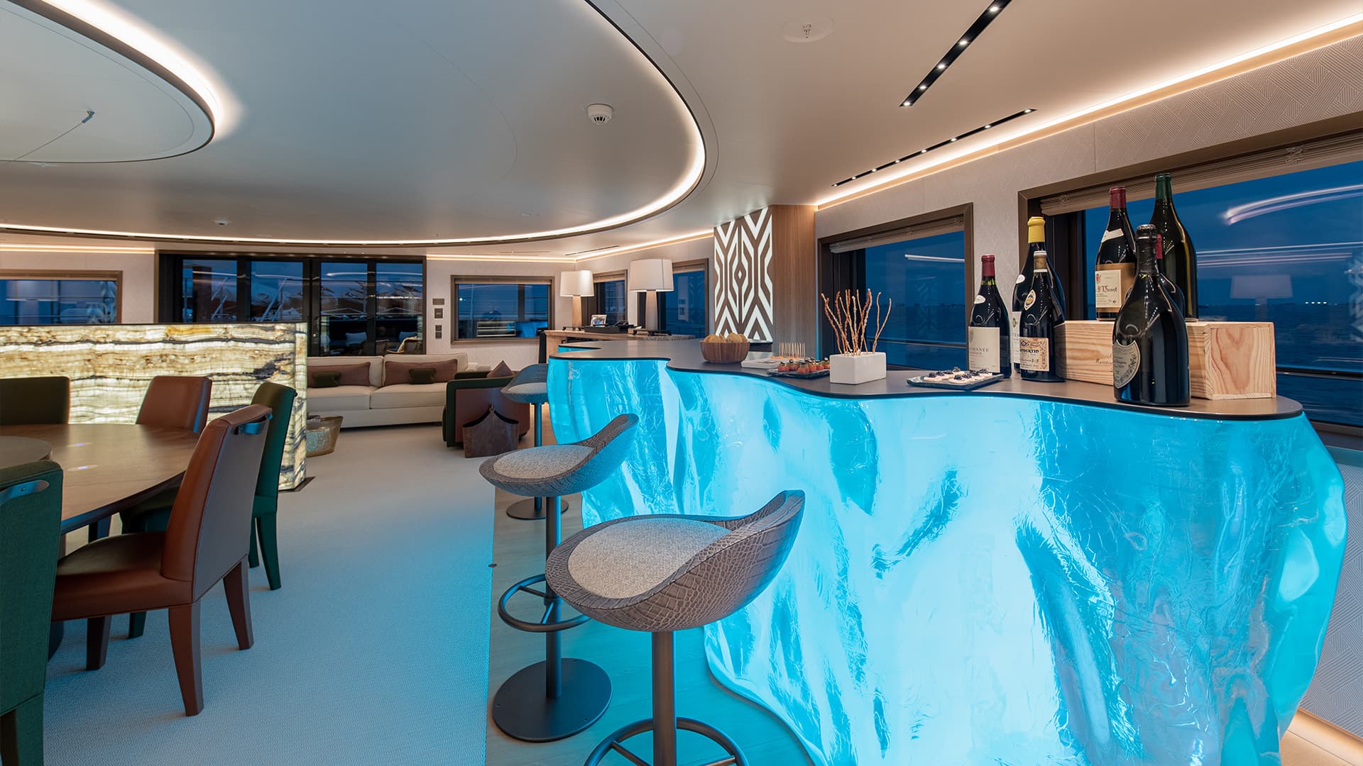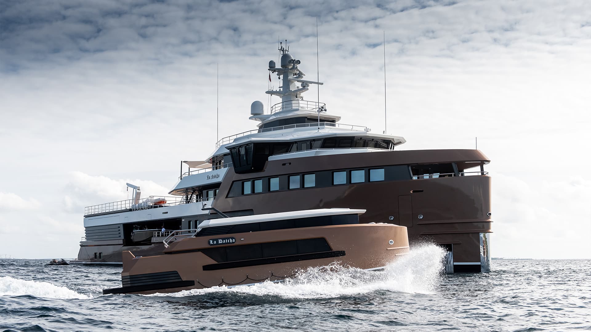Part of the renowned SeaXplorer series, La Datcha was delivered in 2020 and ushered in a new era in expedition yachting. As design partners with Damen Yachting and Azure, EYOS was instrumental in developing La Datcha and the rest of the SeaXplorer range from the first lines drawn on paper. EYOS contributed over 150 design criteria based on its combined decades of expedition experience. A forward observation lounge and deck, for instance, allows for epic sightings of polar bears or bow-riding dolphins. Increased fuel and provisions capability- up to 40 days- allows for extended expeditions well away from supporting infrastructure. Bridge wings extend over the side of the hull to allow better visibility during ice navigation.