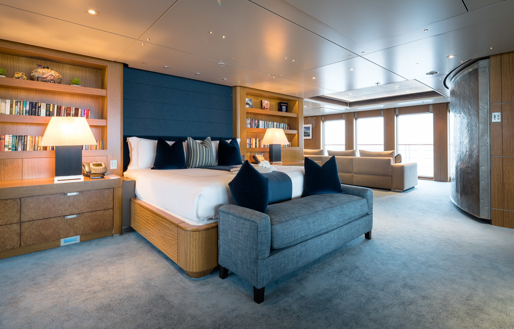 - Entertainment deck with gym, spa, cinema, library and observation lounge