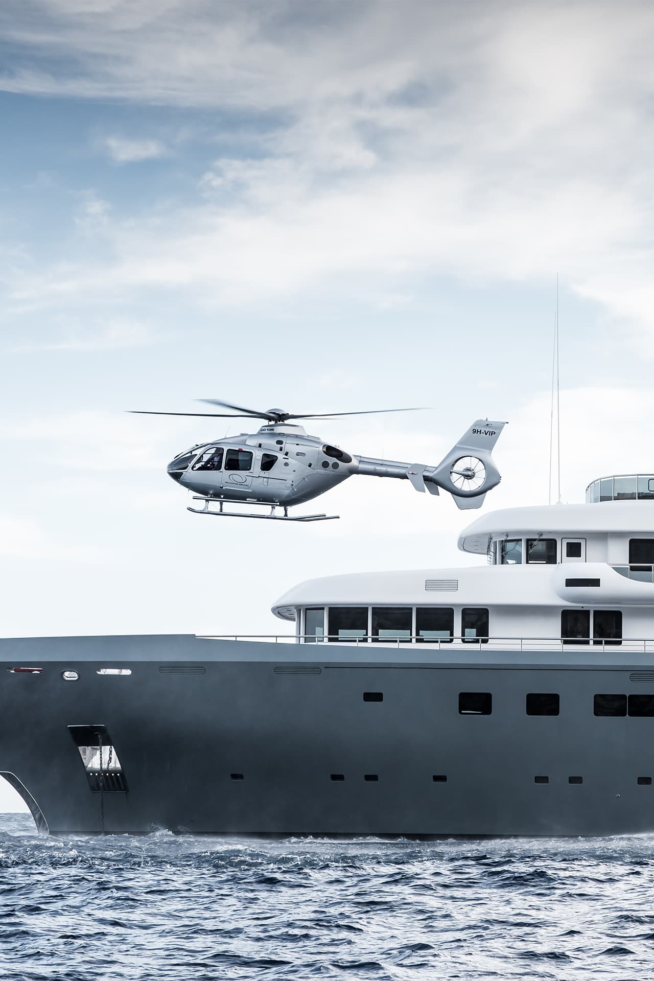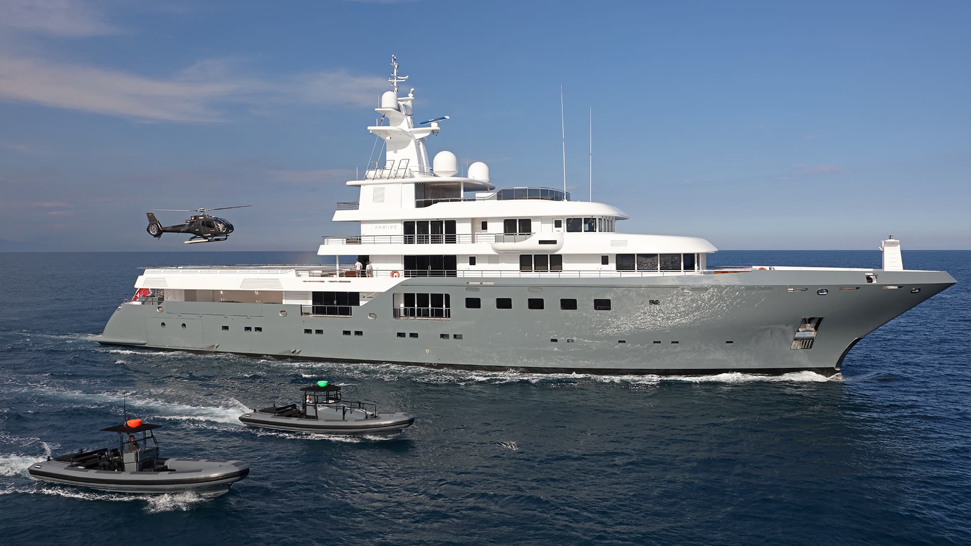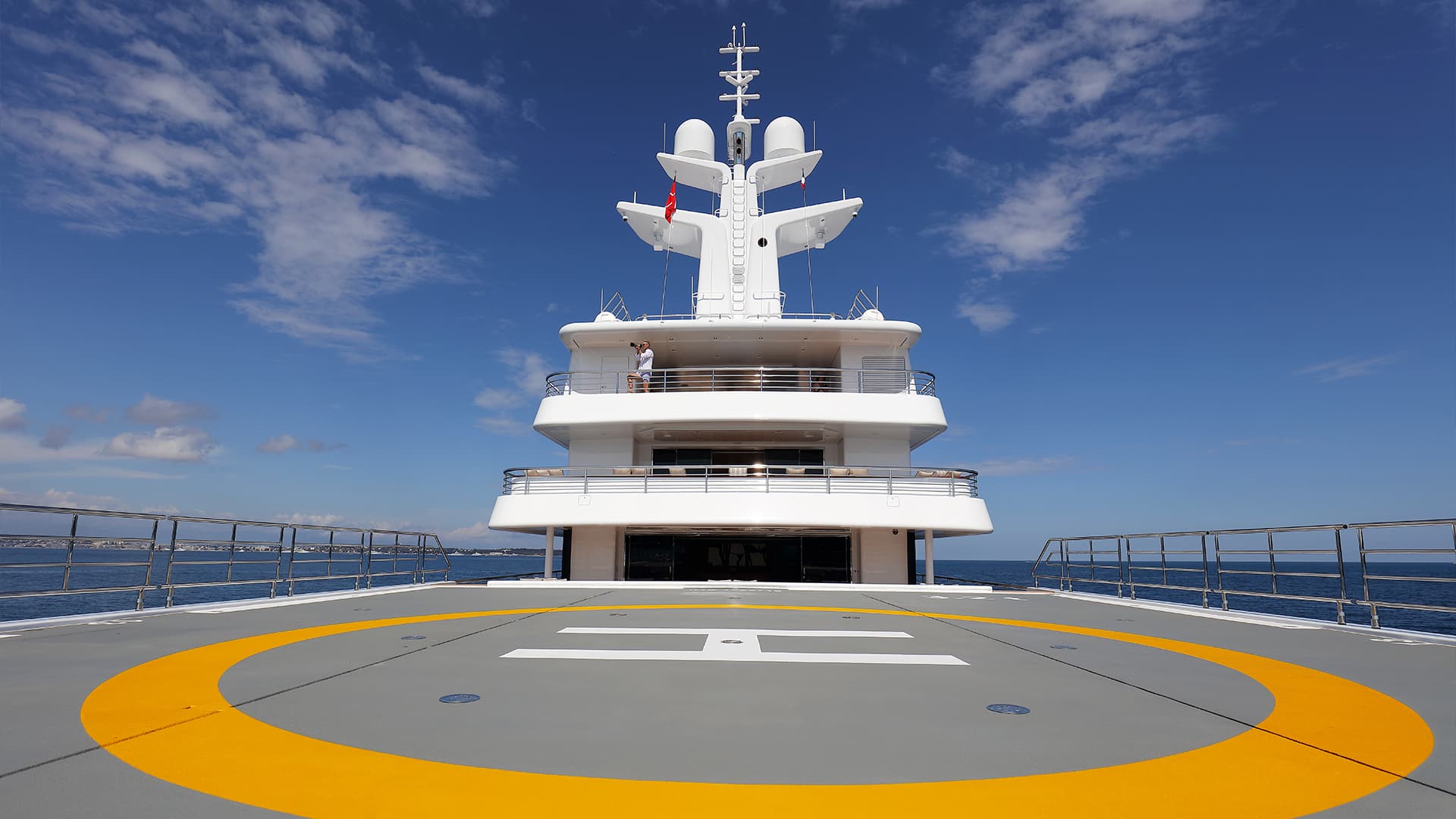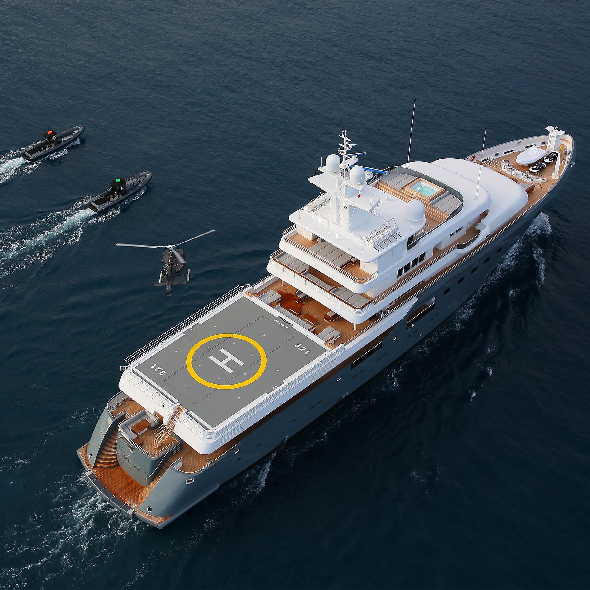 Delivered in 2018, this 73-meter, 2,100 gross ton yacht boasts a helicopter hangar, an ice-classed hull, an Owner’s suite that fills almost an entire deck, and 8 staterooms to accommodate 12 guests.