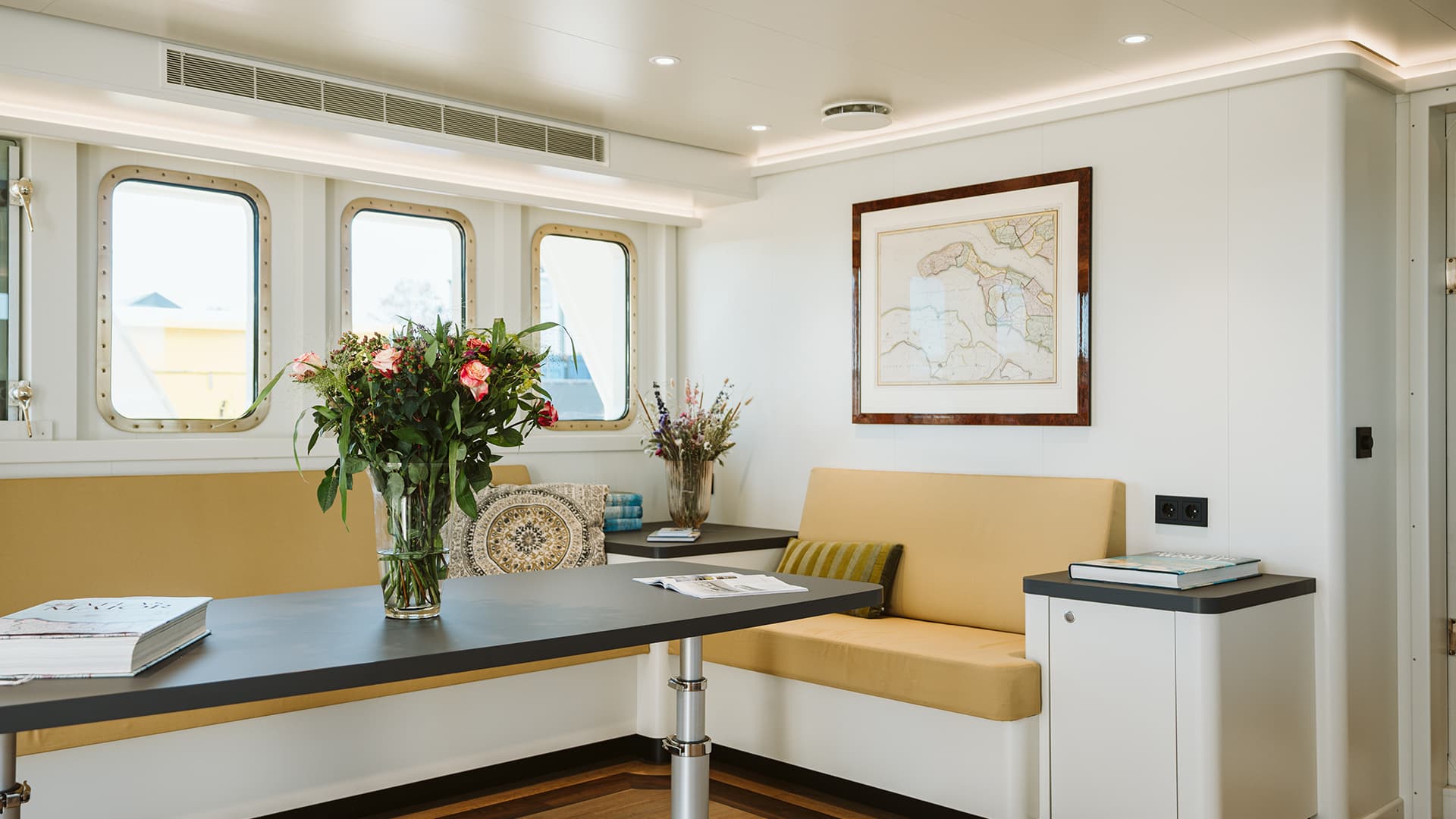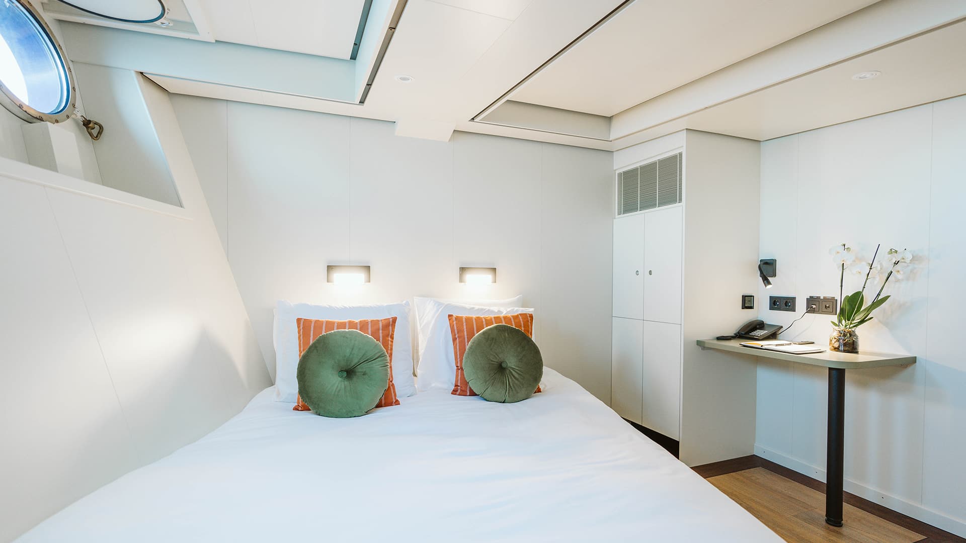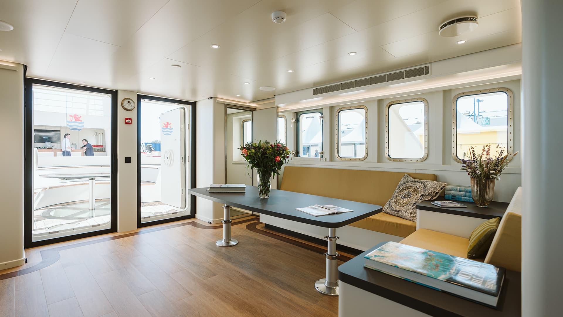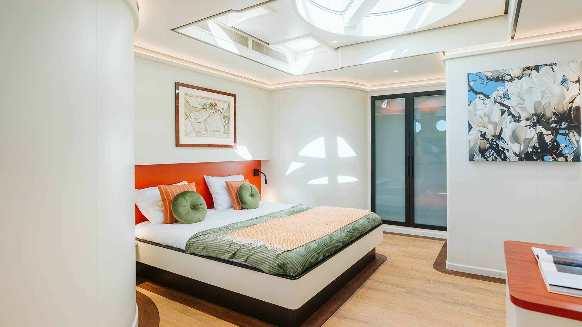 46m Scintilla Maris is a brand new expedition yacht built on the recycled hull of a classic DAMEN trawler design. With new hybrid engines offering four sailing modes, she is extremely efficient and nearly vibration-free— a nimble vessel ideal for exploration. Her flexible cabin configuration and crew/guest ratio means the yacht and crew can adapt their level of service to perfectly match guests’ requirements.
