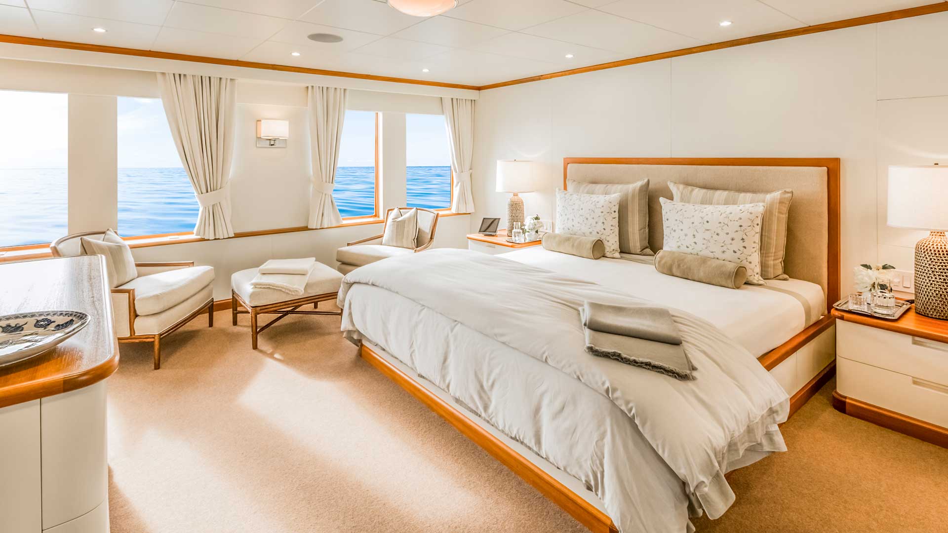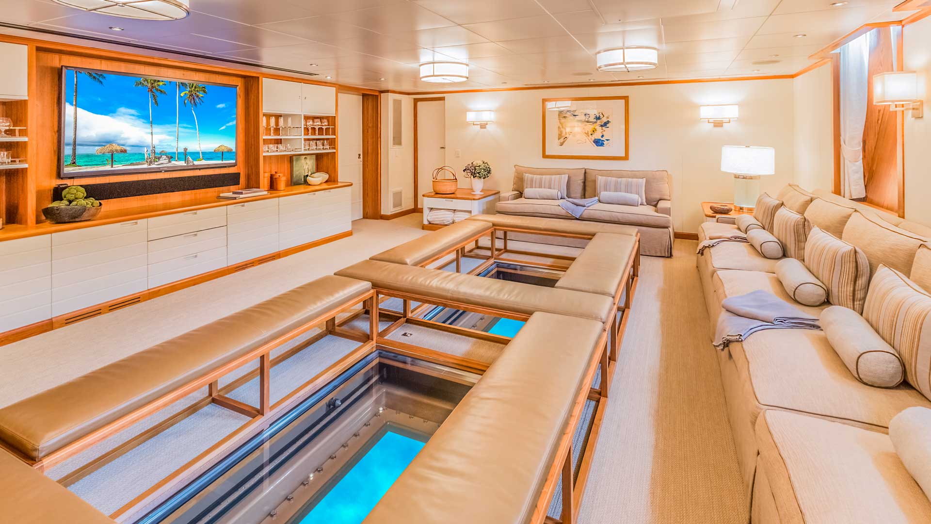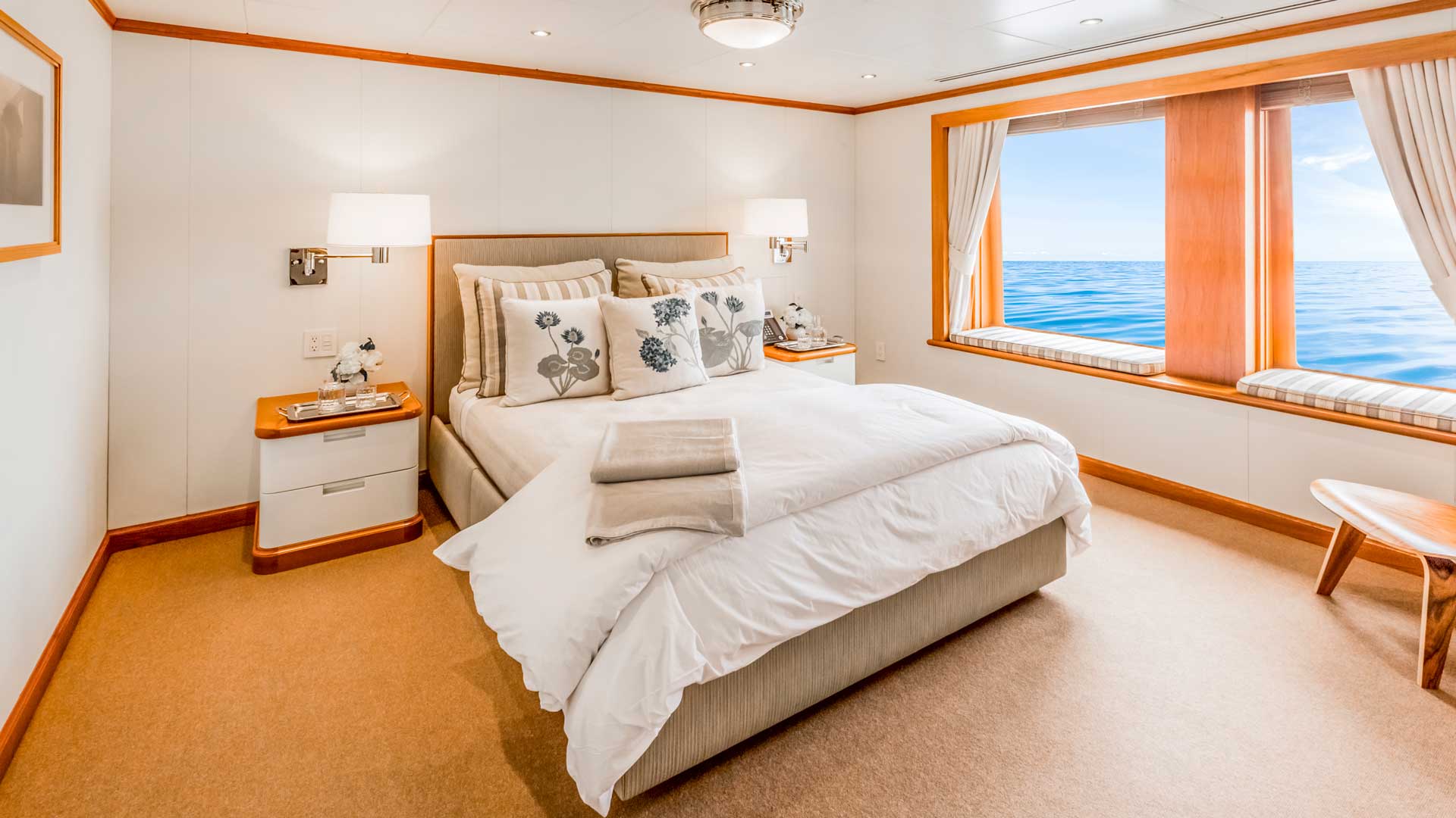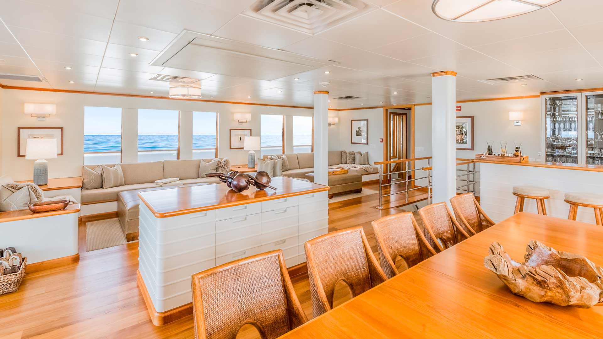 Her standard of luxury is high: SuRi accommodates 12 guests in 7 staterooms, and offers many amenities and exciting features, including a unique media room (in keeping with her mission to advance marine sciences and raise awareness about global ocean issues) with “Windows To the Sea,” a comfortable gathering spot where guests can gaze into the ocean and appreciate the sea life.